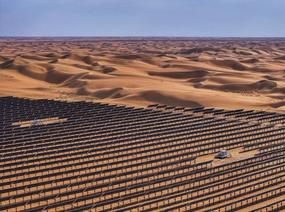 100万千瓦光伏先导工程项目(无人机照片)。该项目地处乌兰布和沙漠。新华社记者 连振 摄