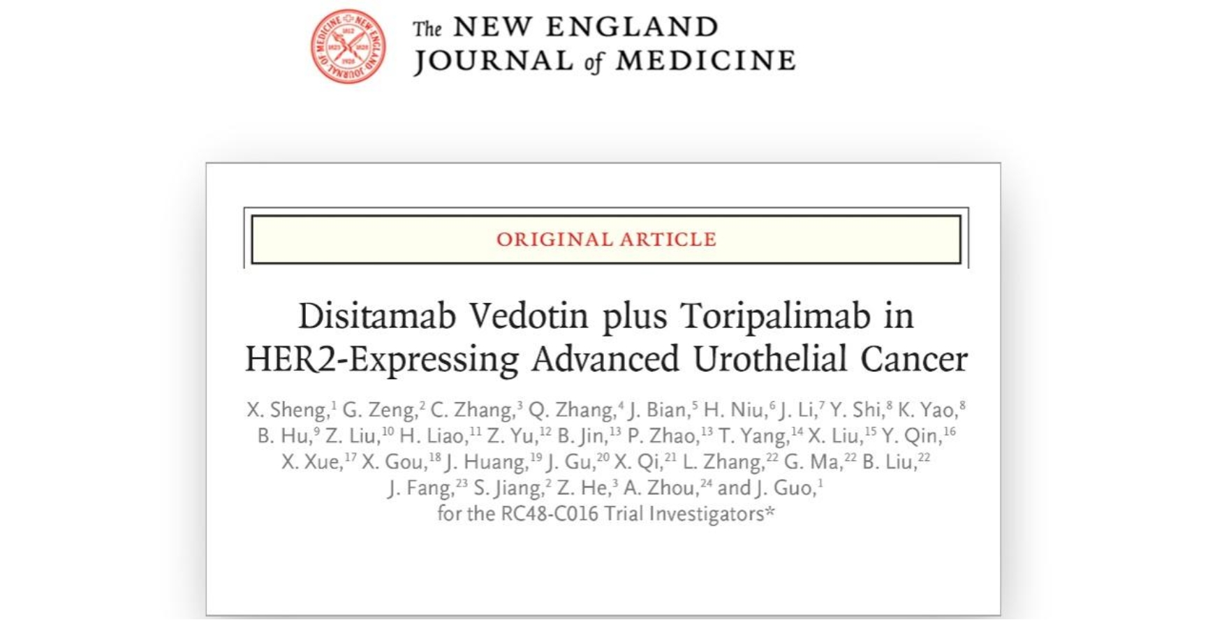 2025年10月19日,由北京大学肿瘤医院泌尿肿瘤内科郭军、盛锡楠教授团队设计主导的全球首个抗HER2抗体偶联药物(Antibody-Drug Conjugates,ADC)用于晚期尿路上皮癌治疗的随机对照3期临床研究 “Disitamab Vedotin plus Toripalimab in HER2-Expression Advanced Urothelial Cancer”的阳性结果正式发布于国际医学顶刊《新英格兰医学杂志》(The NEW ENGLAND JOURNAL of Medicine),并由郭军教授同步在2025年欧洲肿瘤内科大会(ESMO)主席论坛进行口头报告,引起国内外的广泛关注。