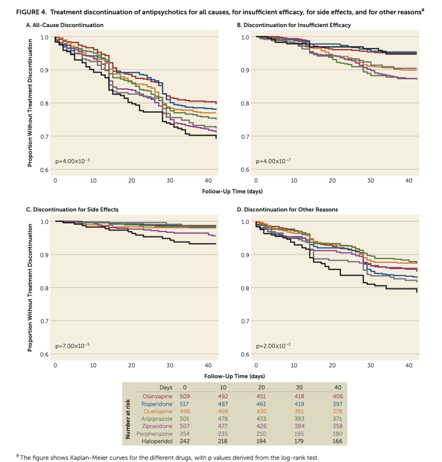 图3.抗精神病药物耐受性比较(以氟哌啶醇为参照)